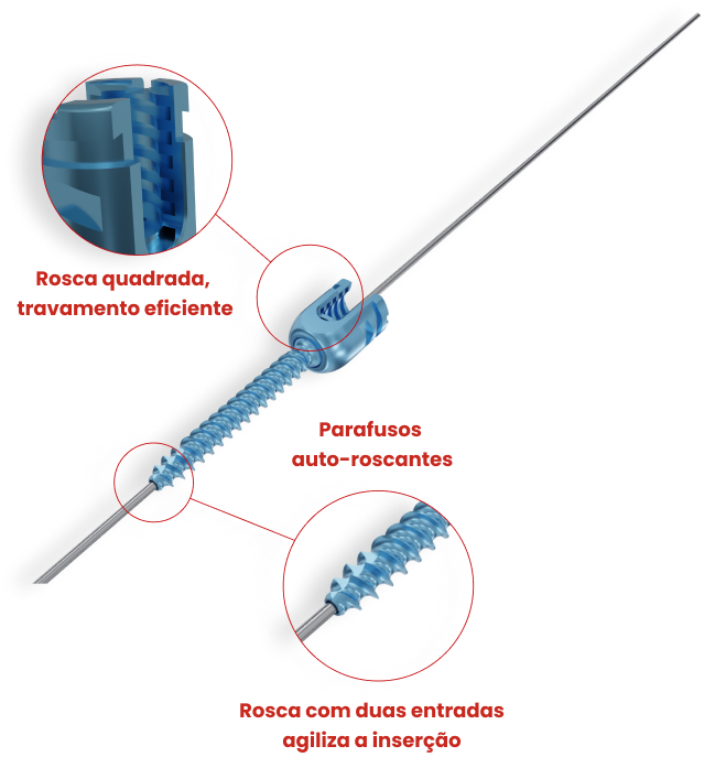 O Mini-Osteo é um sistema de implantes aliado a instrumentais modernos, indicado para cirurgias minimamente invasivas da coluna. Utiliza parafusos pediculares com torres acopladas, que facilitam a inserção das hastes e a estabilização biomecânica com precisão, por pequenas incisões. A técnica reduz o trauma cirúrgico, preserva estruturas musculares e favorece a artrodese, promovendo uma recuperação mais rápida.